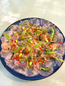 Y, como un homenaje al sabor más puro del mar, Sí o Qué Restaurante presenta su carpaccio de atún rojo de la almadraba, una delicada propuesta que combina frescura, tradición y un toque de sofisticación. Solo hay que ver la foto para imaginar el sabor: el carpaccio de atún rojo de la almadraba es una de esas joyas que entran por los ojos y conquistan al primer bocado, combinando frescura, textura y presentación impecable.